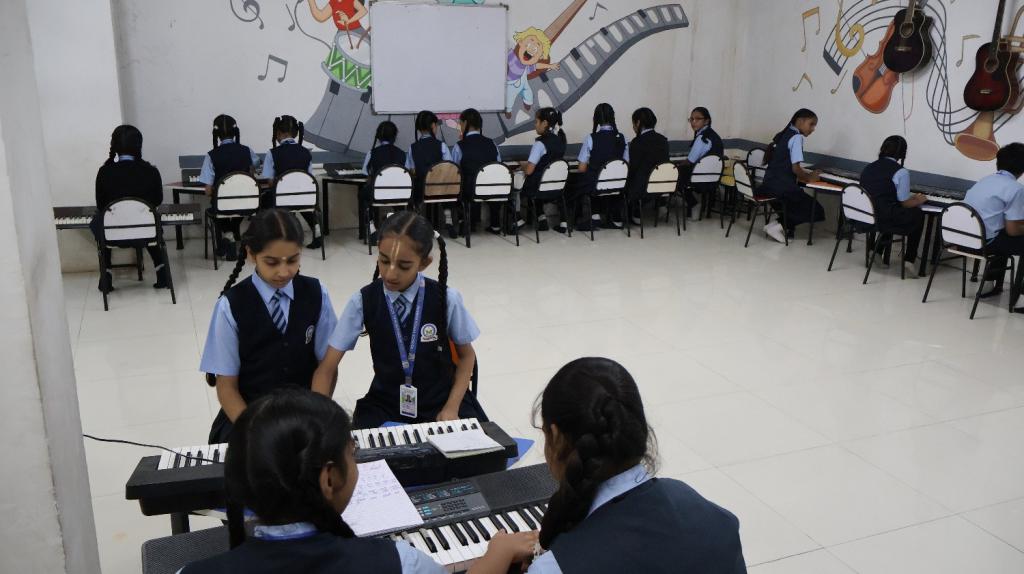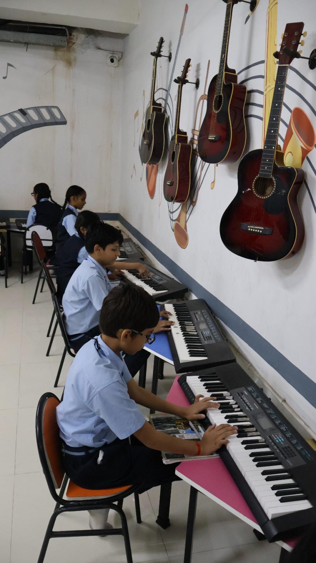 South International School includes music as a core part of its curriculum, as musical training helps to develop language & reasoning, We have a wide and old culture of music, which we should have the pride to promote to our kids. Along with vocal, we have instrument training here from professionals. It is set up in the cellar where the kids can be in a silent atmosphere.